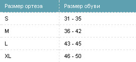 Размер голеностопного ортеза выбирают по размеру обуви.